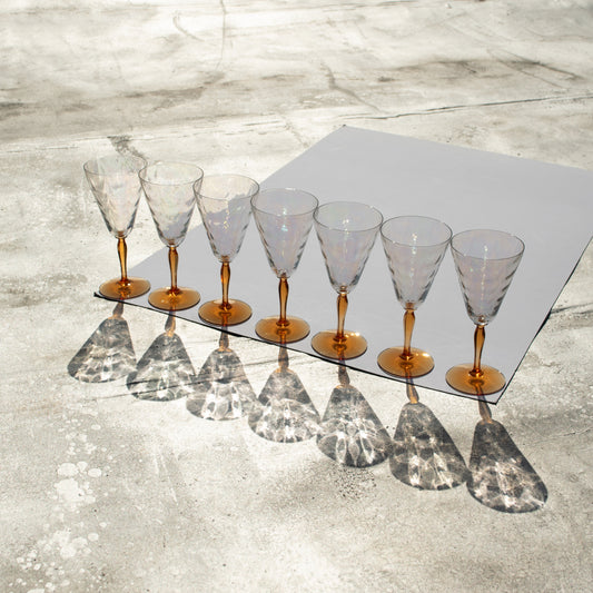 Various amber, yellow, orange, marigold, and honey-colored glassware.