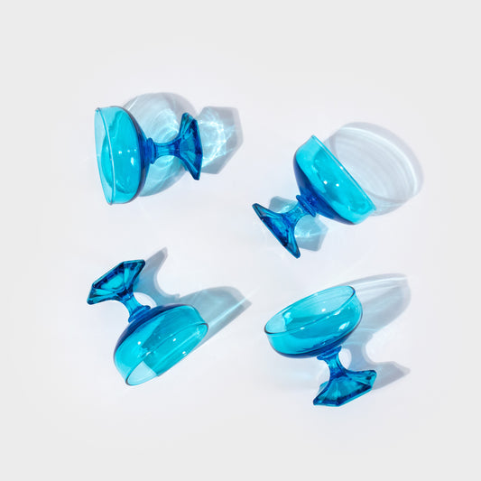 Vintage Anchor Hocking Flair Blue Coupe Glasses
