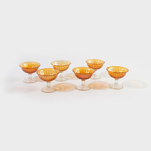 Vintage Amber Iridescent Carnival Glass Dessert Cups