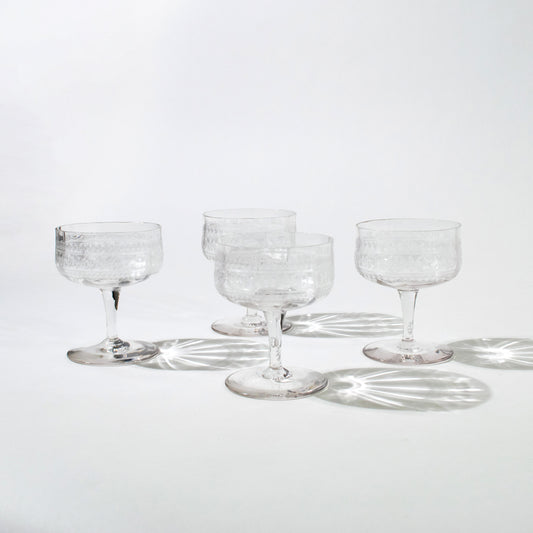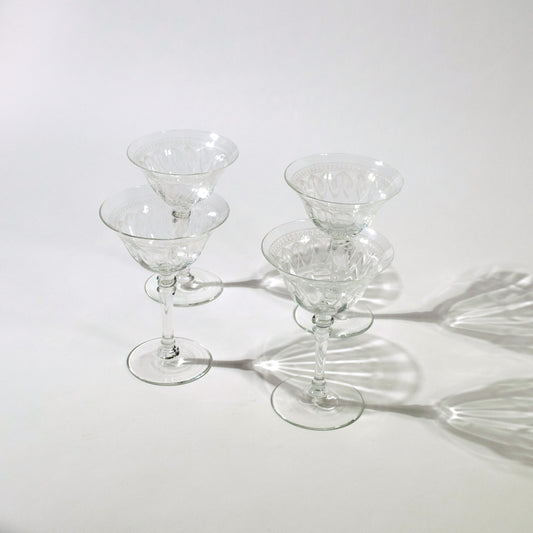 Vintage Fostoria Needle Etched Coupe Glasses