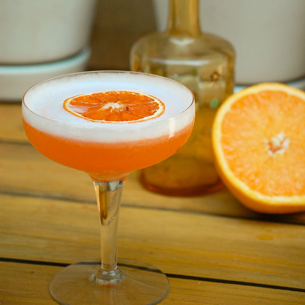 A zesty citrus explosion, shaken with egg white, grand marnier and aperol.