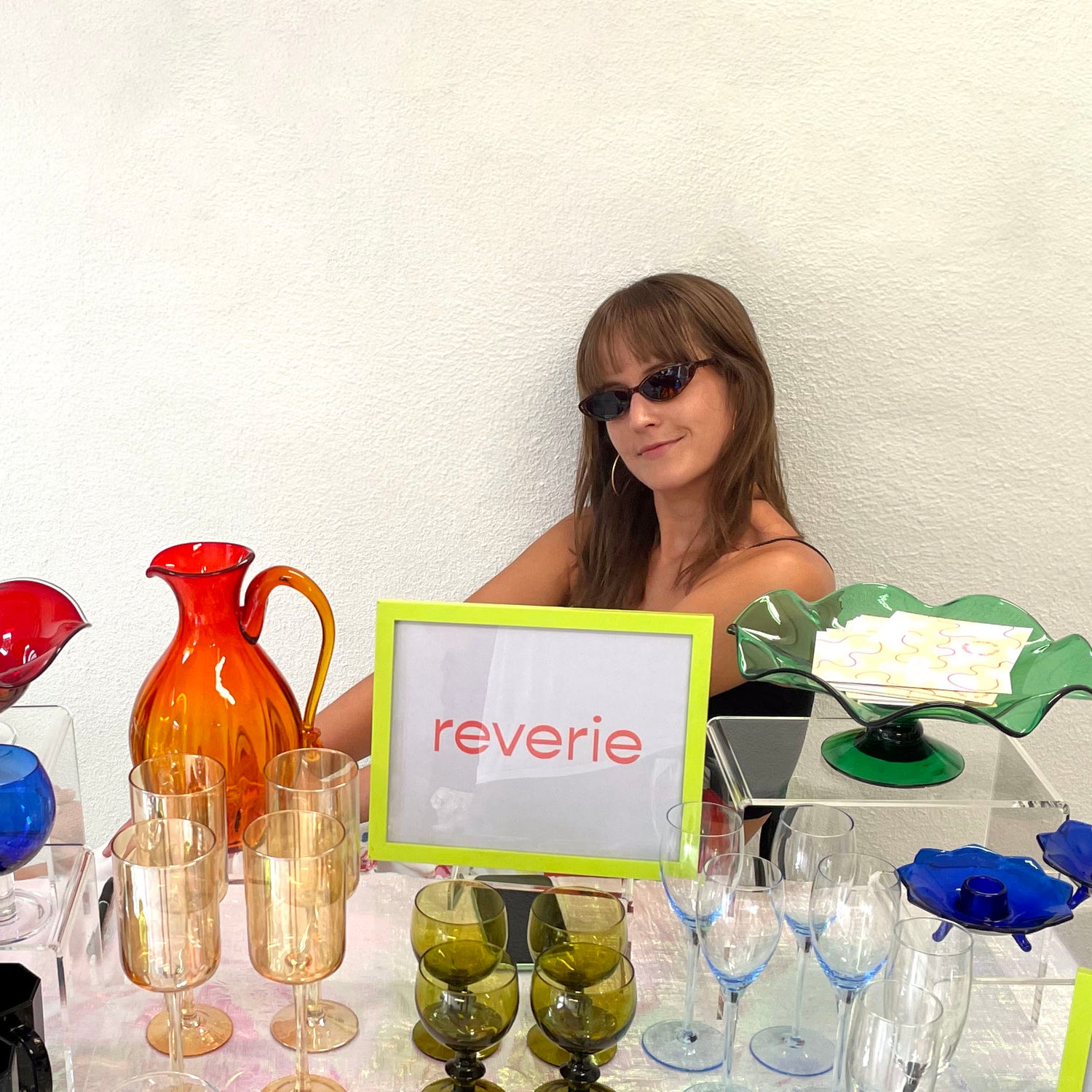 Reverie began as a passion project of New York visual and motion designer Nina Bishop, stemming from her fascination with glass forms, interiors, and expressions of light and color. Inspired by bold color stories, European modernism, organic forms, and abstraction, Nina hand-sources all Reverie pieces and photographs them at her home studio.