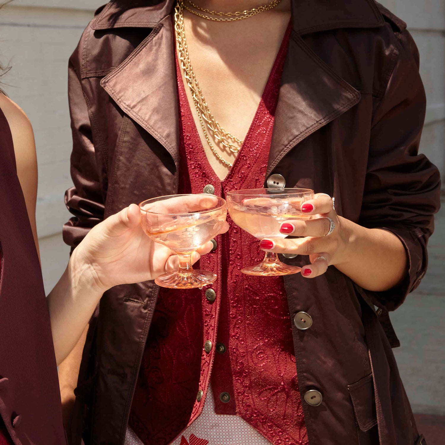 A three-part color-storied collection of vintage glassware, in partnership with curated clothing by The Narrative Vintage and custom drink pairings by Cocktails with Corinne.