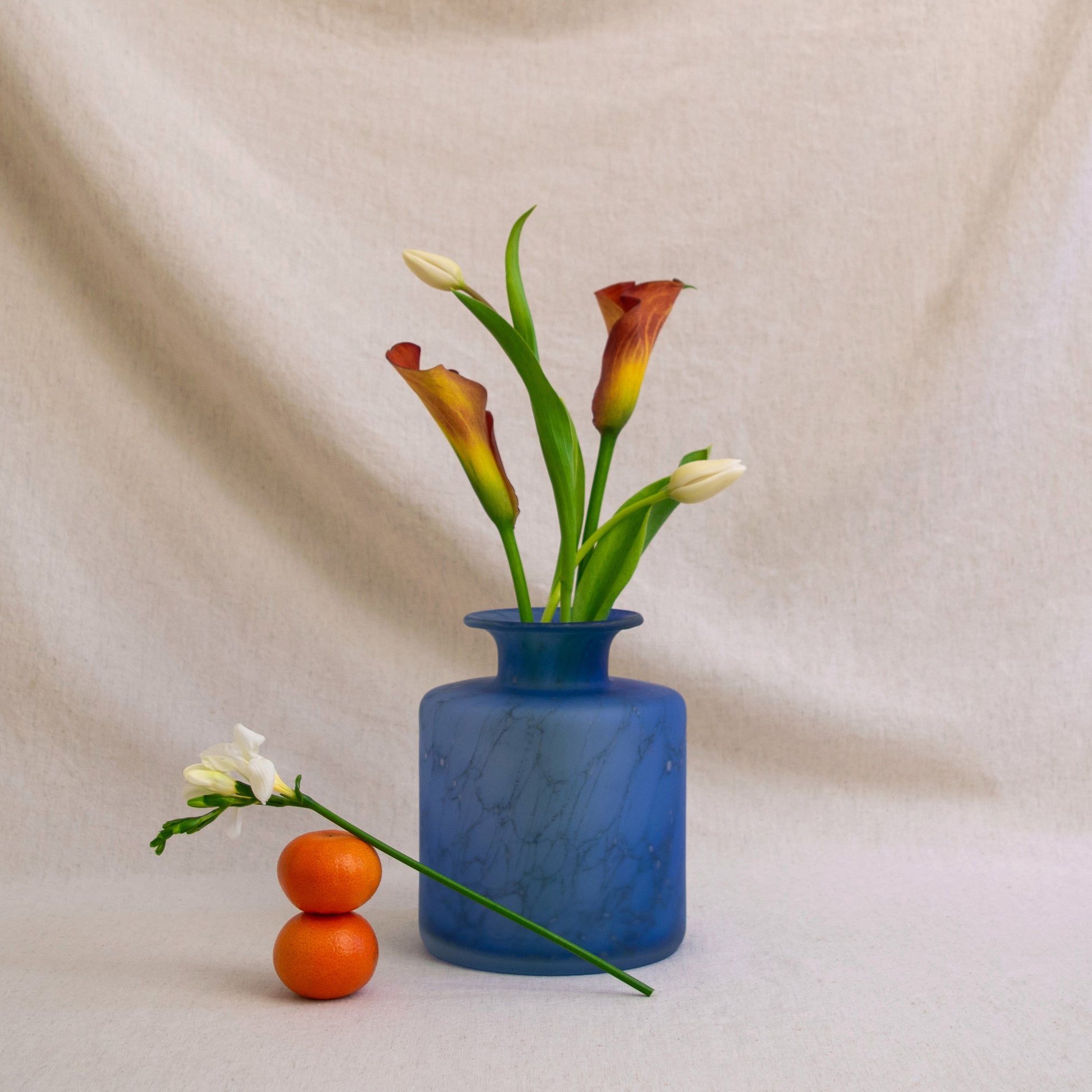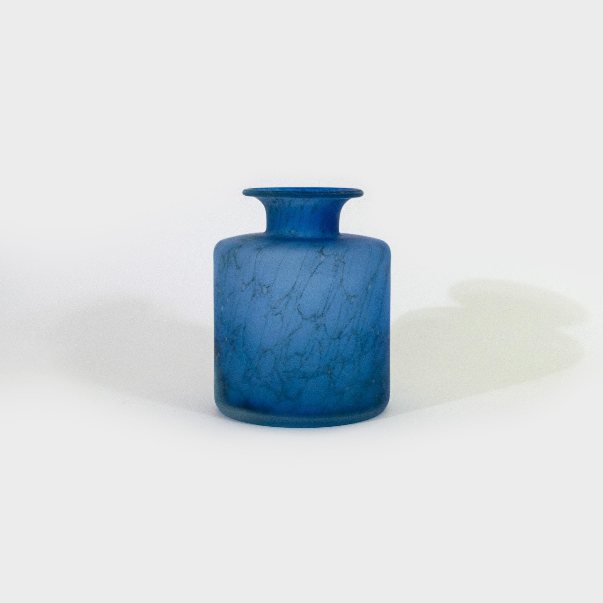 Blue Cylindrical Frosted Polish Art Glass Vase