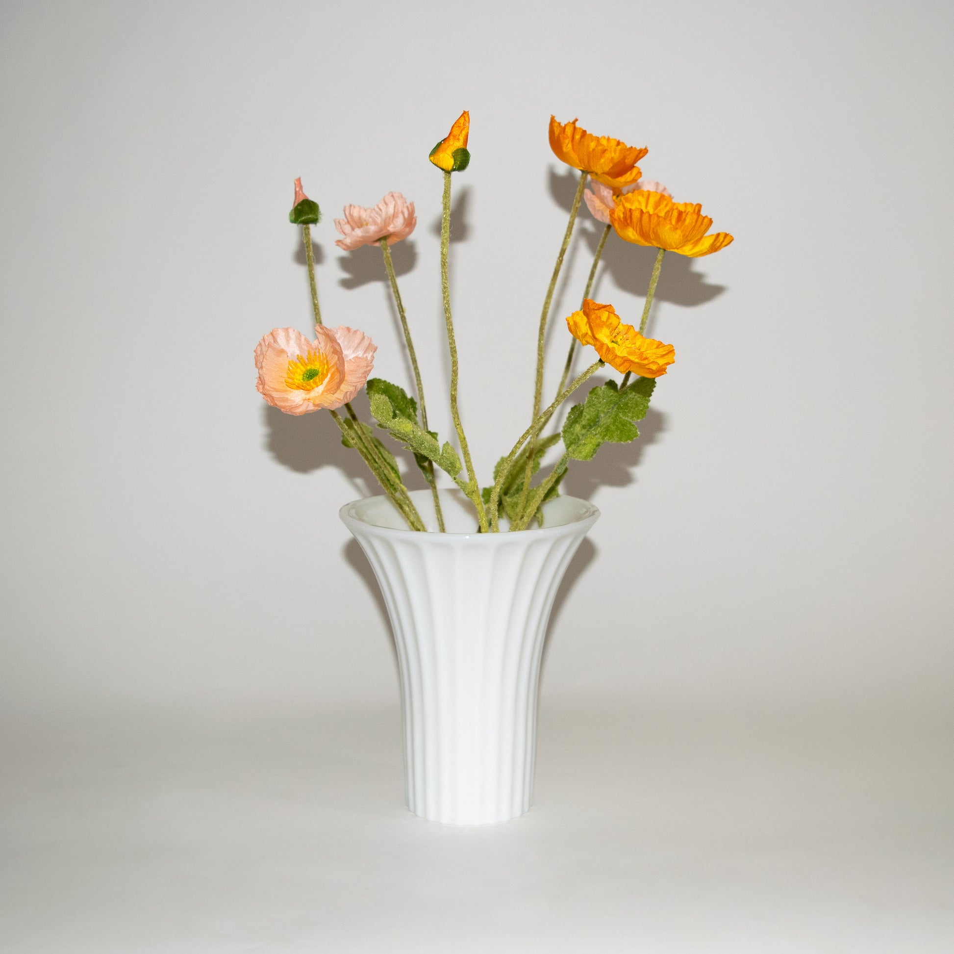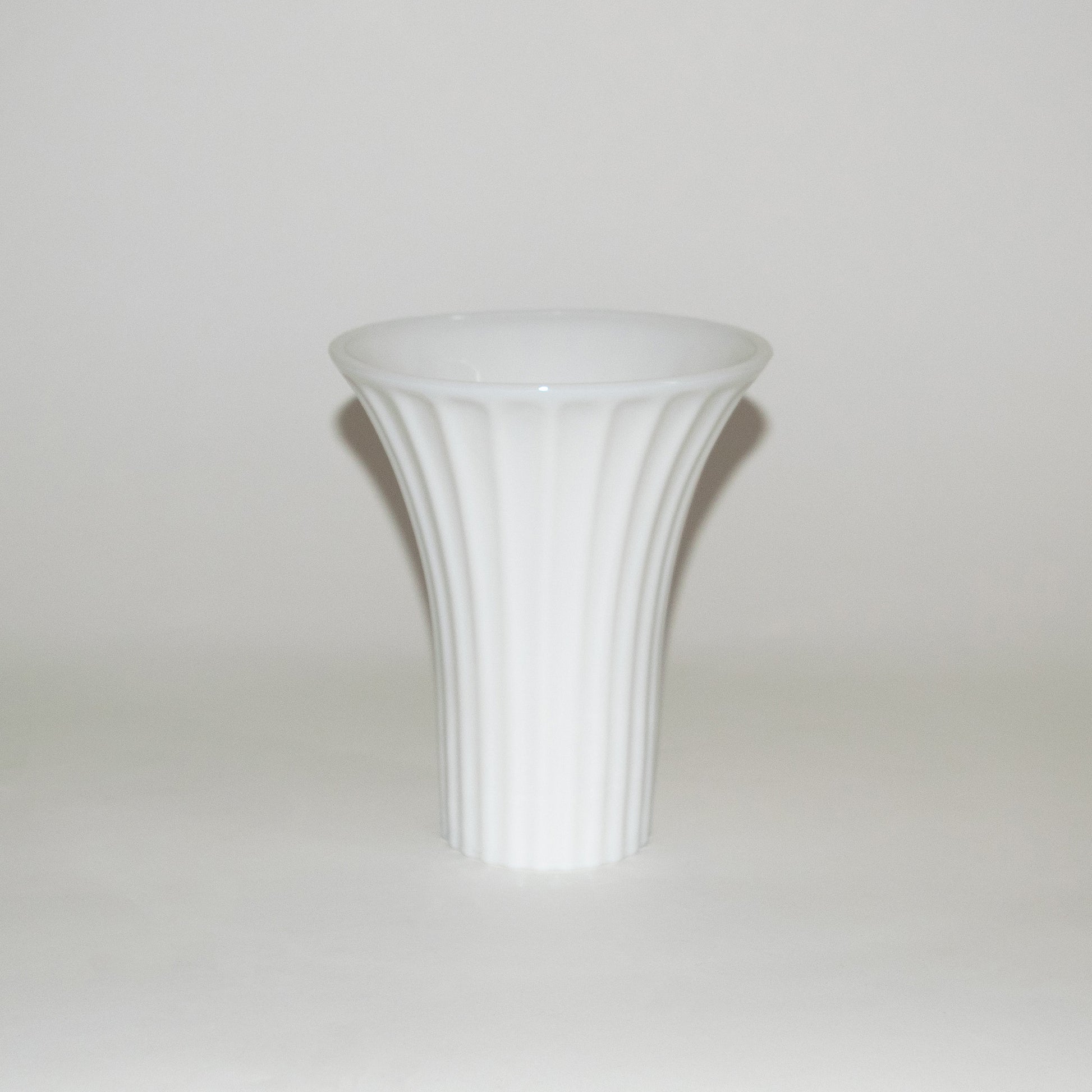 Vintage mcm-style ribbed milk glass vase with flared opening. It looks great with all florals, and could make an interesting planter, as well!