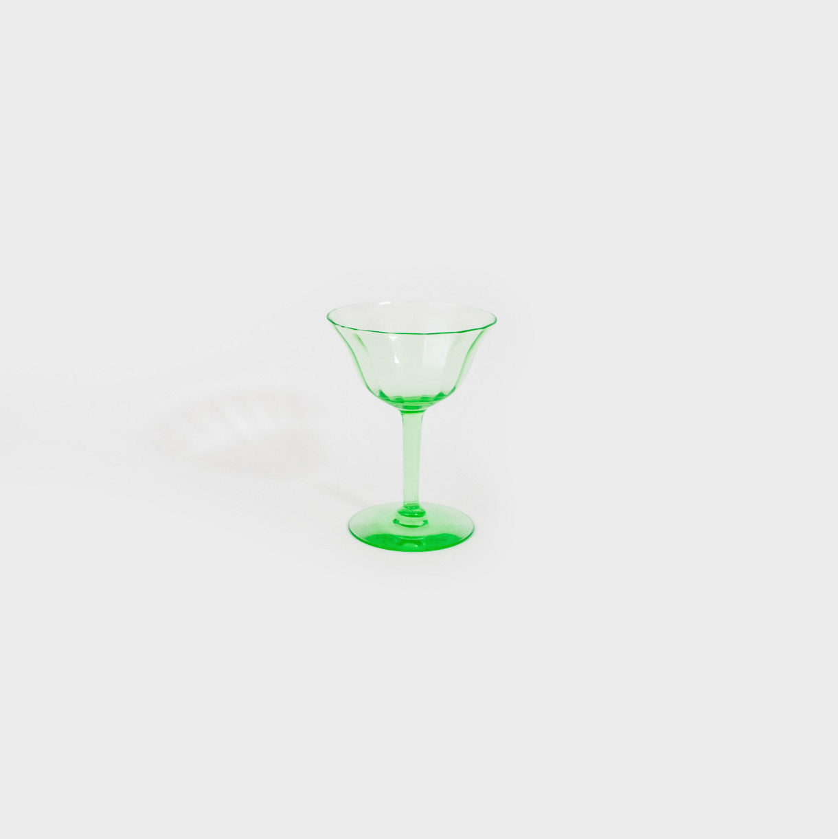 A simple green depression glass coupe, with an optic patterned bowl and classic stem. Sold individually.