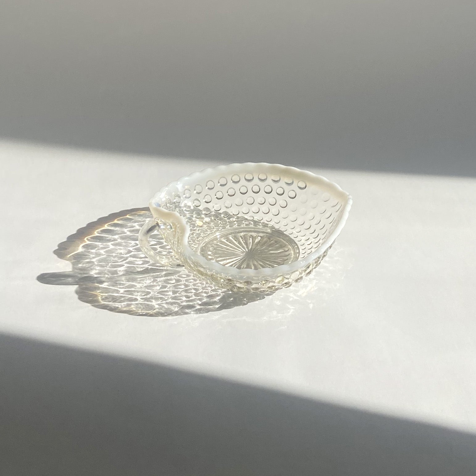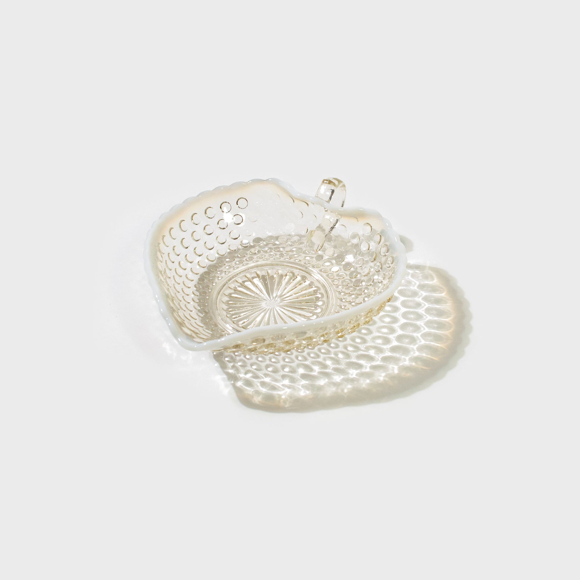 Heart-Shaped Opalescent Hobnail Glass Dish