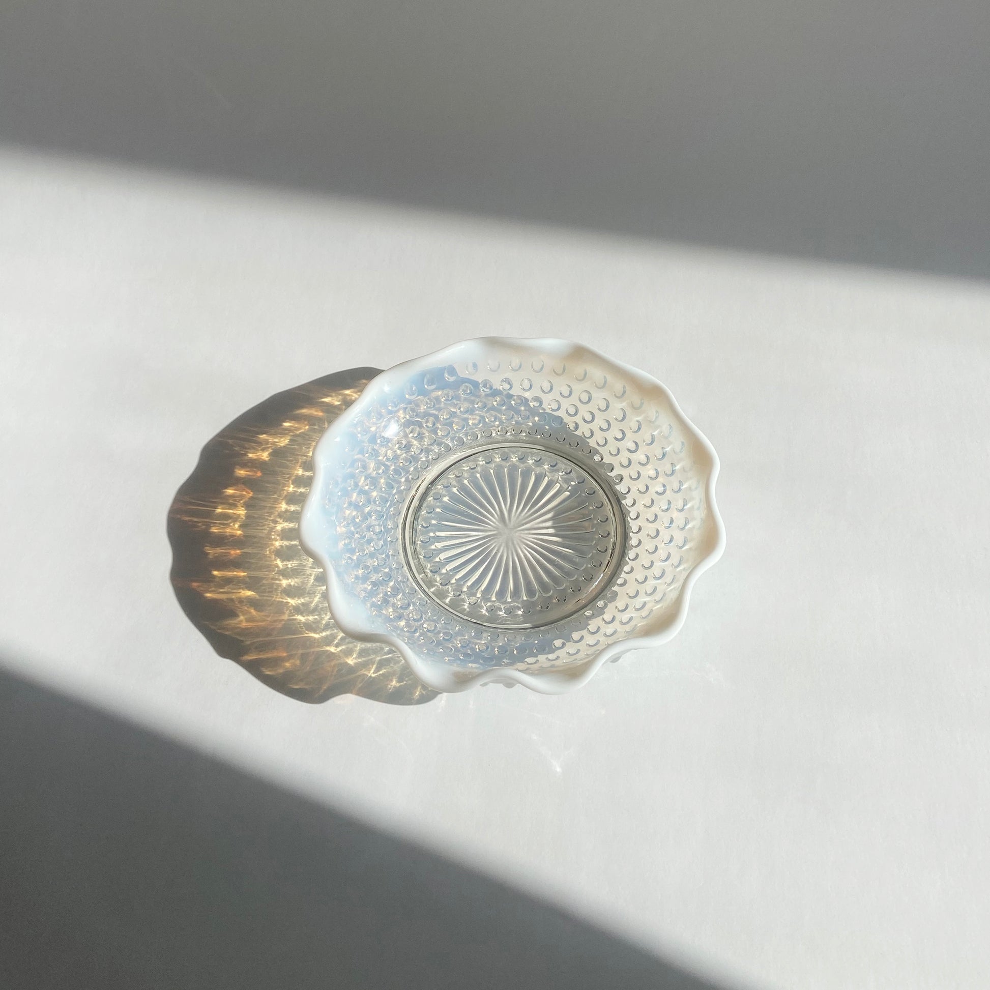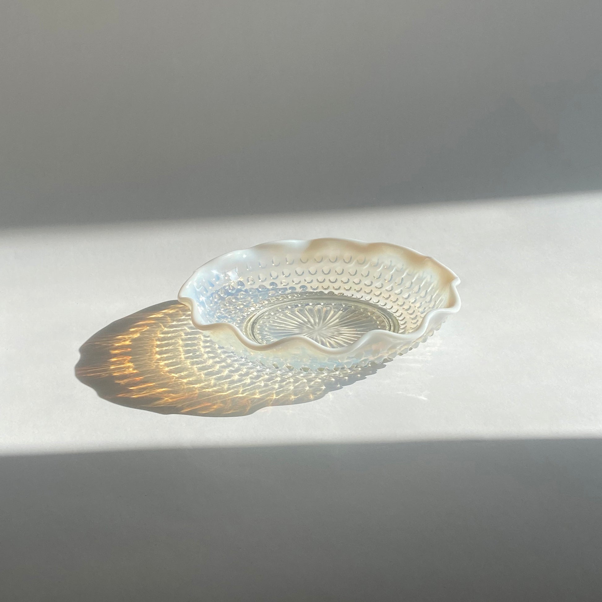 Opalescent Hobnail Glass Scalloped Edge Dish