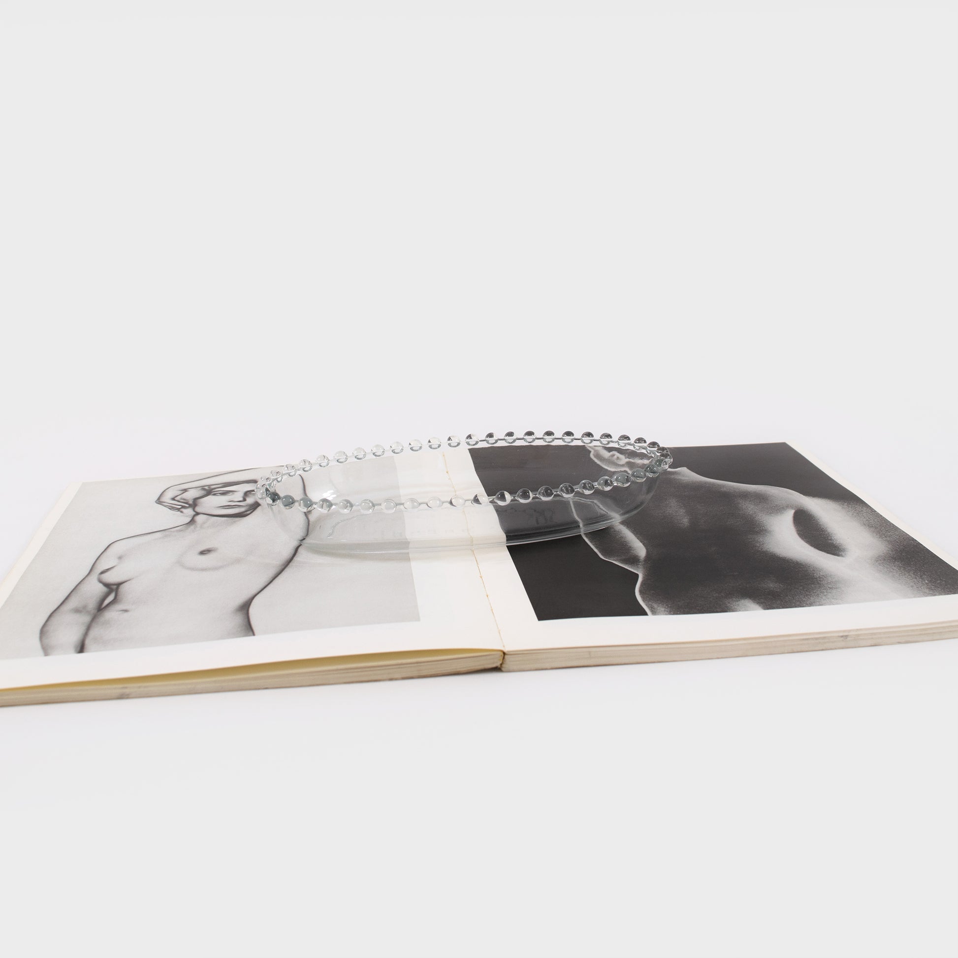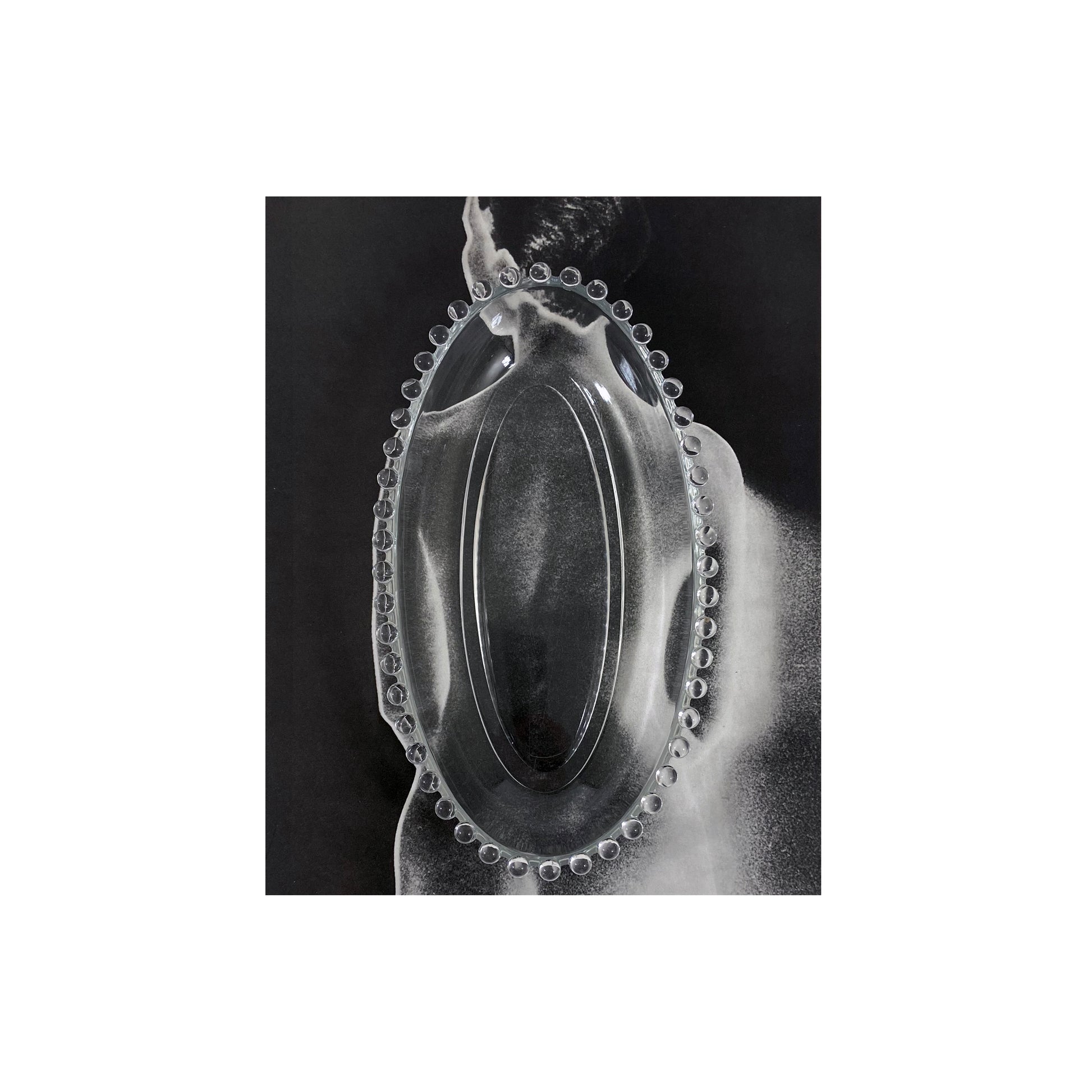 Vintage Imperial Glass clear oval-shaped trinket dish with a classic candlewick bead trim.