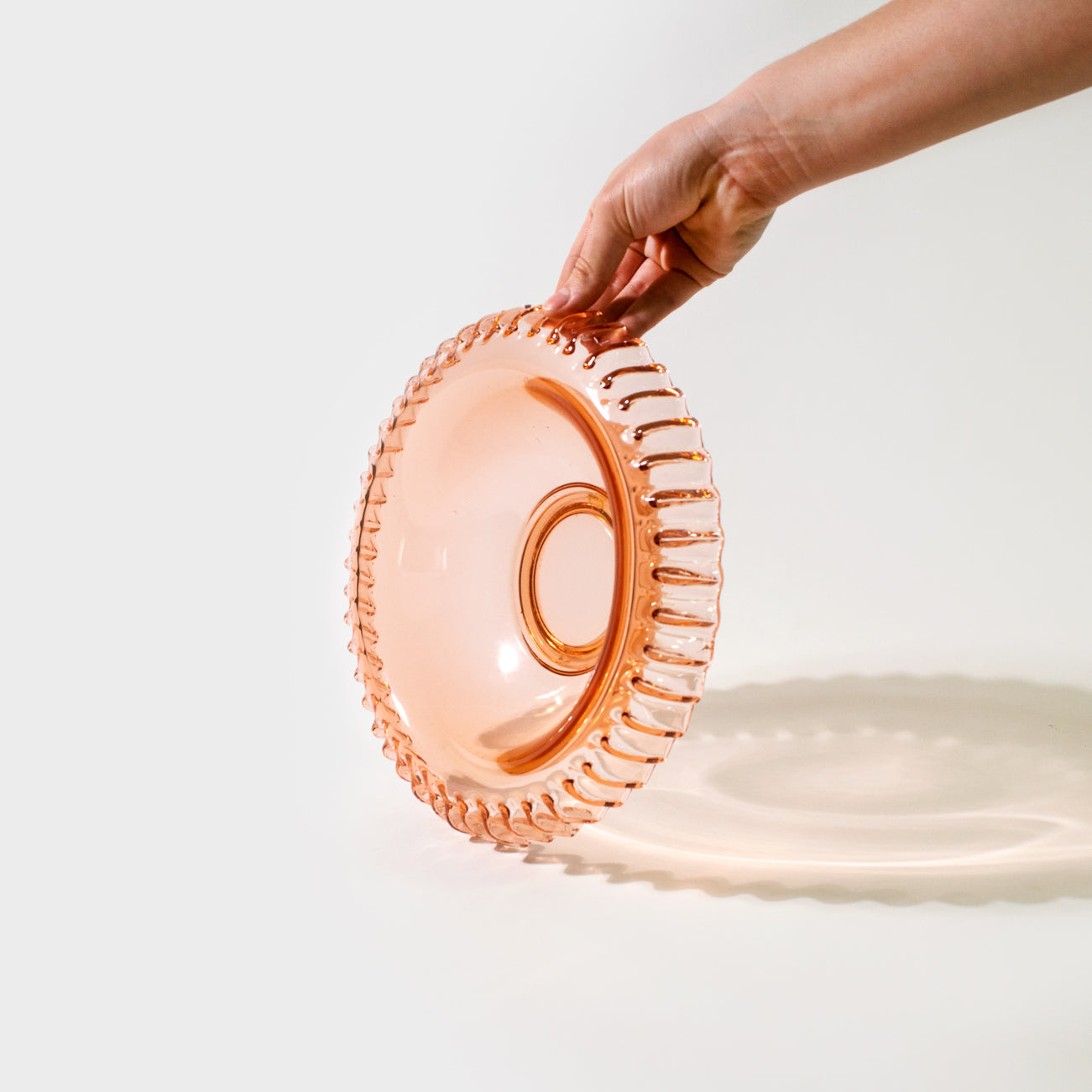Pink Glass Console Bowl with Rolled and Crimped Edge