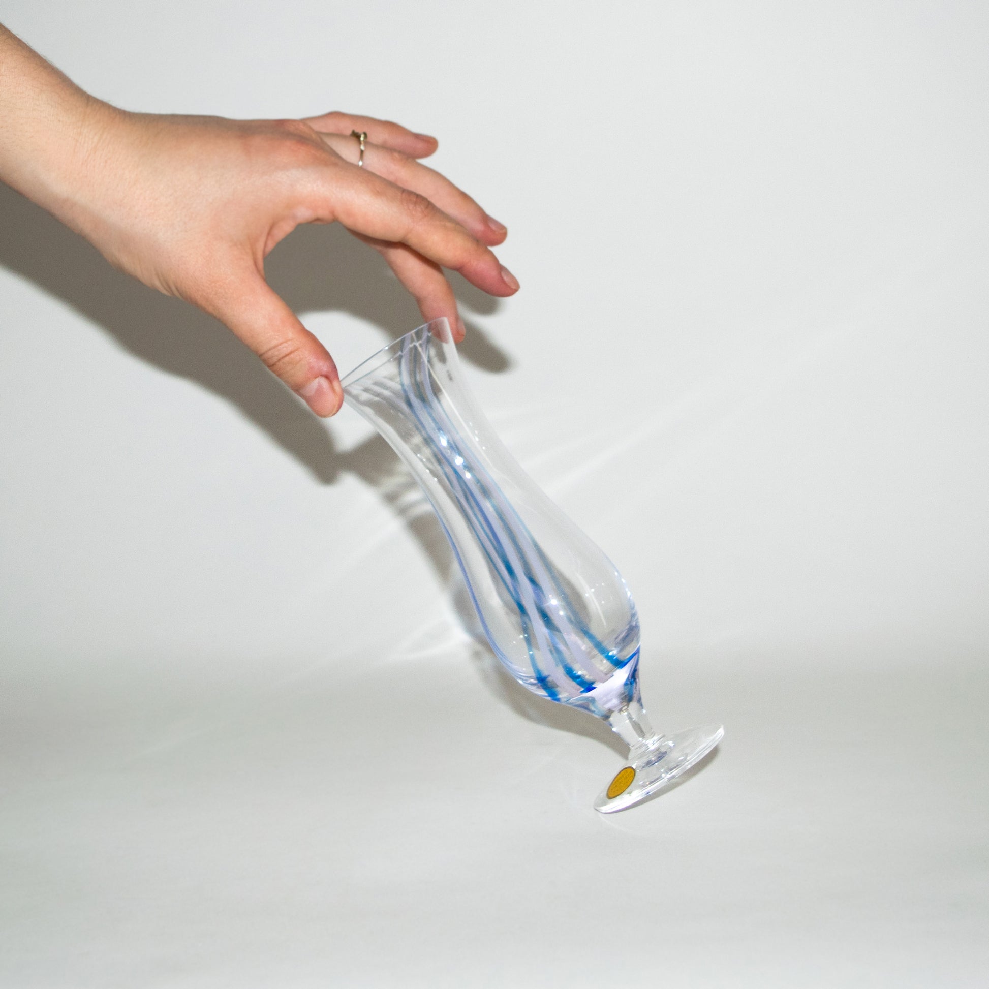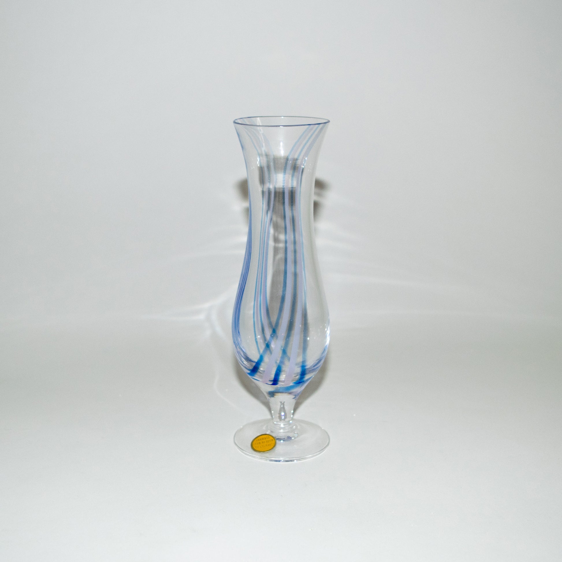 Beautiful blue and purple swirl glass bud vase, vintage handmade in Caithness, Scotland. Perfect for small spaces, or a group of smaller vases as table decor.